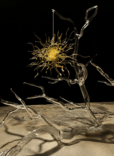 Abattage est un néon-sculpture qui prend la forme d'une branche d'arbre, un symbole de vie et de croissance. À travers cette œuvre, j'ai exploré le contraste entre la destruction et la résilience. Le verre, conserve la lumière du néon qui s’en échappe par les différentes ramification, créant un jeu d'ombres et de reflets. L'abattage, acte brutal de coupe, devient ici une métaphore de la fragilité de la nature, mais aussi de sa capacité à persister, à briller même après la destruction. Abatage interroge le spectateur sur la beauté et la force qui résident dans ce qui reste après le choc.