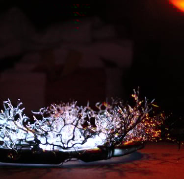 Le Néon enseigne est un luminaire très concret, il a pour seule utilités d’illuminer une typographie dans le but de transmettre un message. Mon but est de prendre à contre pied ce luminaire ne vivant que de nuit afin de lui donner un aspect sculptural. Lui permettant d’être aussi perçu le jour tout en donnant de la poésie au néon par l’utilisation de modules en verre. Poussant le spectateur à s’imprégner de l’ambiance, rendant le luminaire immersif. Quand le néon est allumé dans une pièce sans lumière le spectateur est plongé dans un micro univers inspiré par la lumière d’une clairière au claire de lune alors que lorsqu’il est éteint dans une pièce éclairé son aspect paraîtra différent.